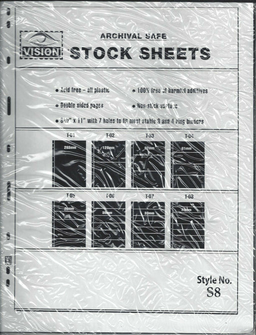 1 large pocket for mint sheets or large covers. Sold as a pack of 5 BLACK Sheets. These Vision Black Stock pages are made of hard PVC and are 100% ...