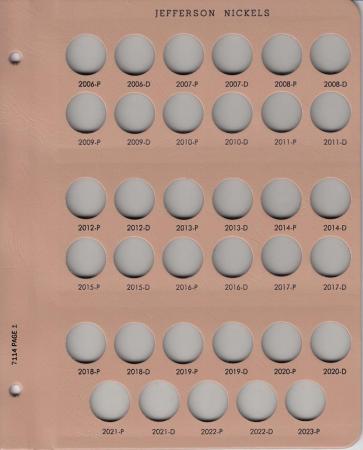 Dansco Replacement pages are used to update older versions of albums or replace worn pages. This page is page 1 of the Jefferson Nickels (Dansco mo...