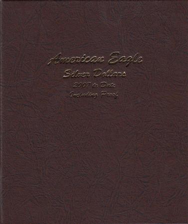 This Dansco Supreme Album for American Eagle Silver Dollars w/ Proof 2007 to Date (Dansco model number 8182) consists of a brown leatherette binder...