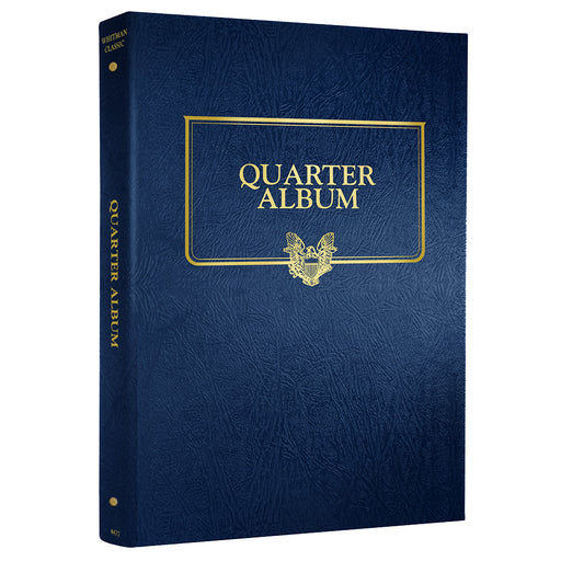 This Whitman Classic Album for Presidential Dollars Date Set 2007-Date consists of a dark blue leatherette binder with blue loose-leaf hinged pages...
