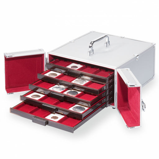 Coin case CARGO MB5 made of aluminum, holds 5 MB or 3 MBXL coin boxes, lined in burgundy velour, lockable (2 keys), strong comfortable carrying han...