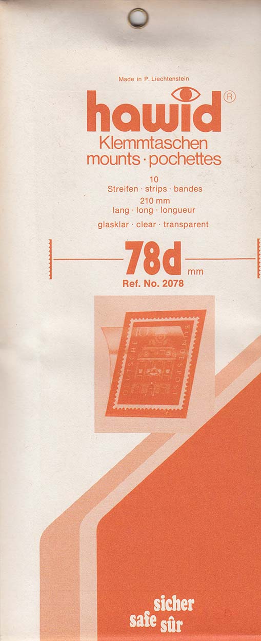 Backing Color Available: ClearHeight: 78mmLength: 210mmCommon Uses for This Size: UN MI Blocks, Mini SheetsNumber of Stamp Mount Strips per Pack: 10