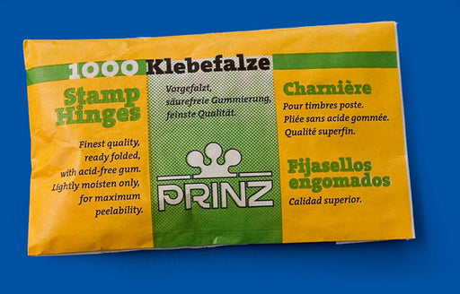 Prinz Stamp Hinges are hinges of the finest quality and are pre-folded with acid-free gum. Lightly moisten for maximum peelability. Sold in packs o...