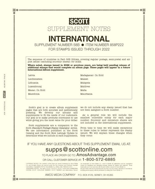 International Album: 2021Scott International Album Pages: Part 57B for stamps released through 2021 (Countries L-Z).This Scott Album Supplement cov...