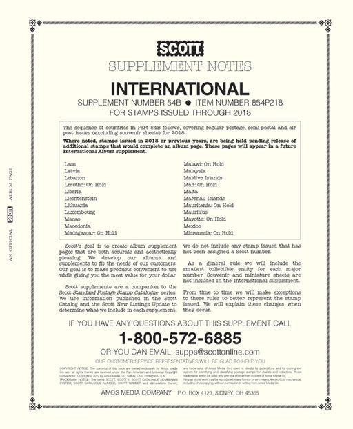 Scott International Album Pages: Part 54B for stamps released through 2018 (United Nations & Countries L-Z).This Scott Album Supplement covers ...