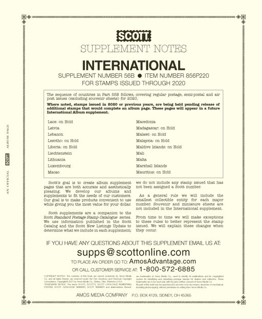 Scott International Album Pages: Part 56B for stamps released through 2020 (United Nations & Countries L-Z).This Scott Album Supplement covers ...